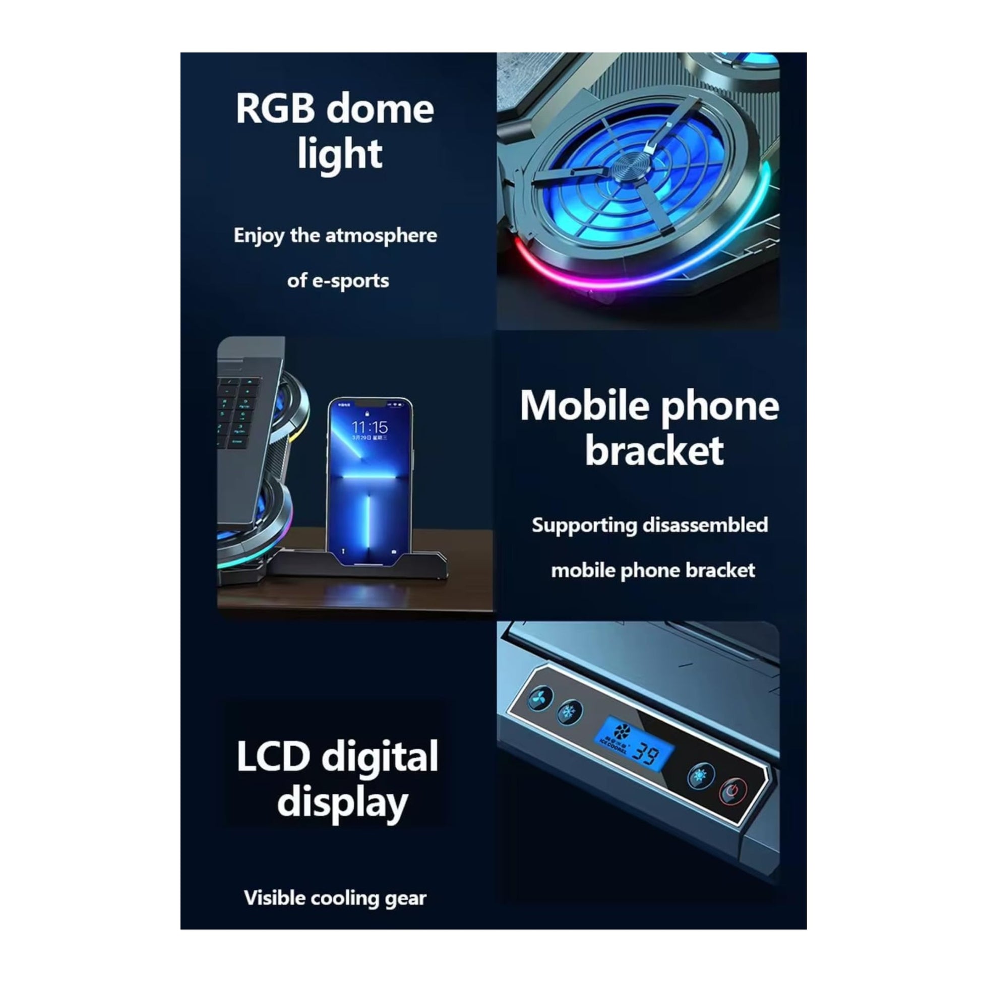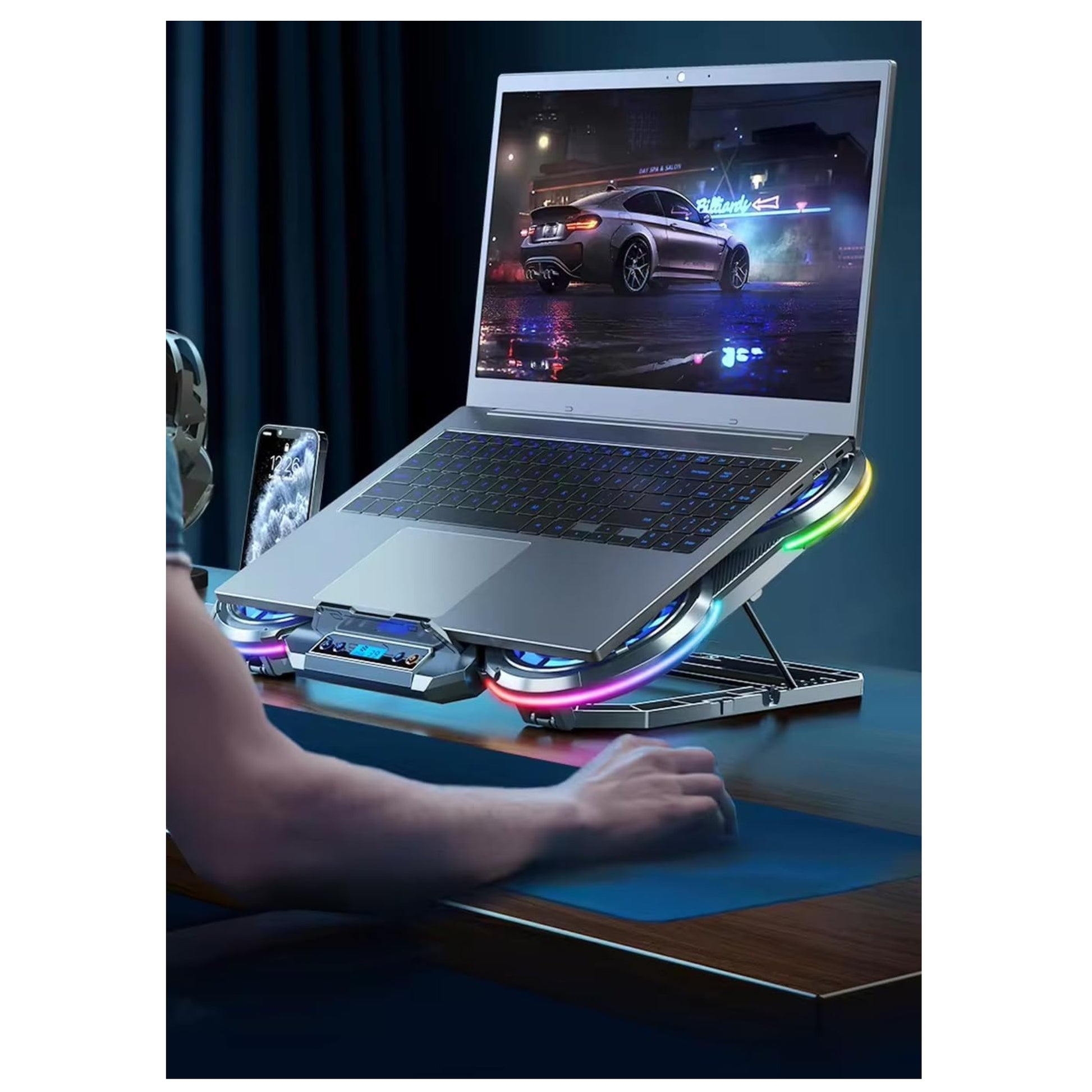 Base Gamer Refrigerante 6 Ventiladores Con Soporte Para Celu