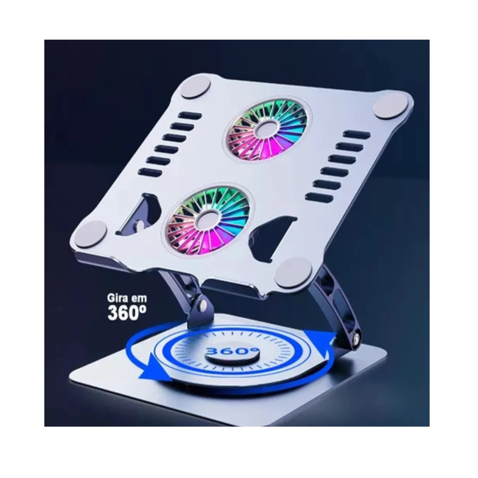 Base Para Portatil Metalica 360° P43 | Elevacion 2ventilador Plata