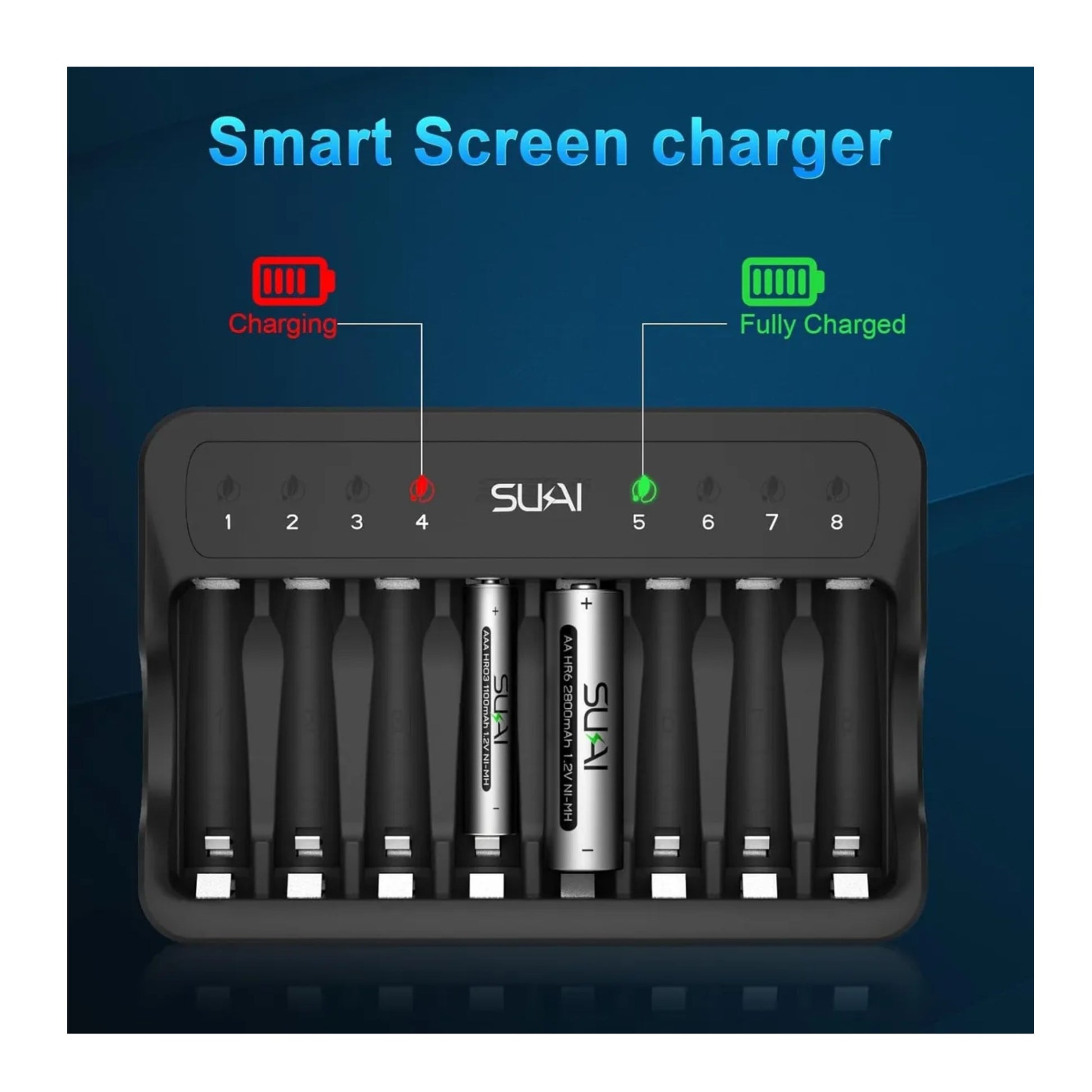 Cargador De Pilas Inteligente 2800mah 8puestos + 8pila Sukai
