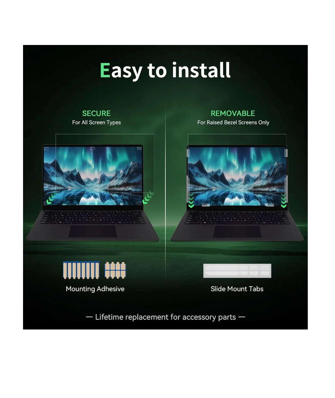 The 14-inch 16:9 Privacy Anti-Spy Screen Filter safeguards your laptop display by limiting viewing angles, ensuring sensitive information remains visible only to you. Its high-quality material reduces glare and fingerprints, enhancing screen clarity while providing discreet protection from prying eyes in public or shared spaces. Easy to install and remove, this filter is ideal for professionals prioritizing confidentiality without compromising screen performance.