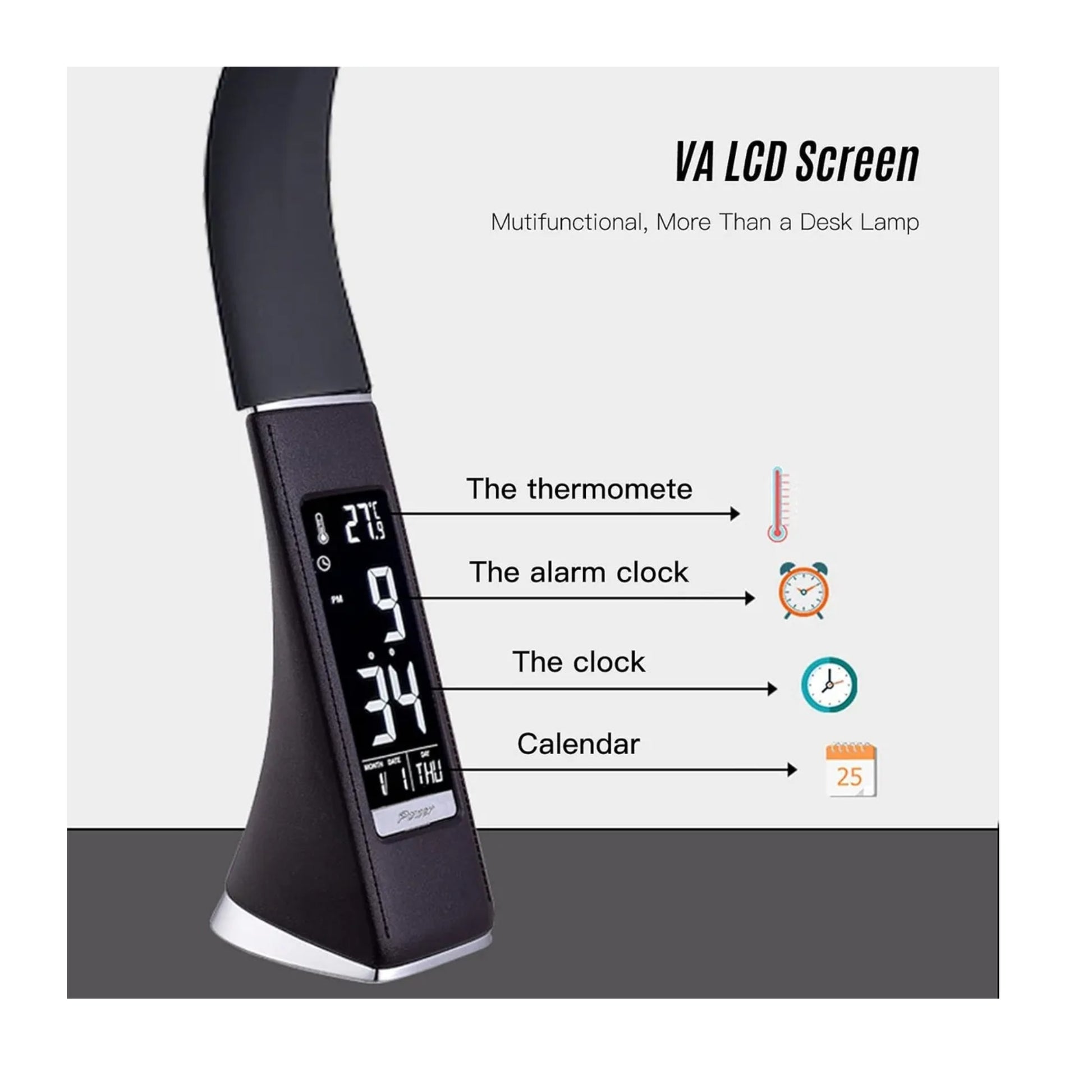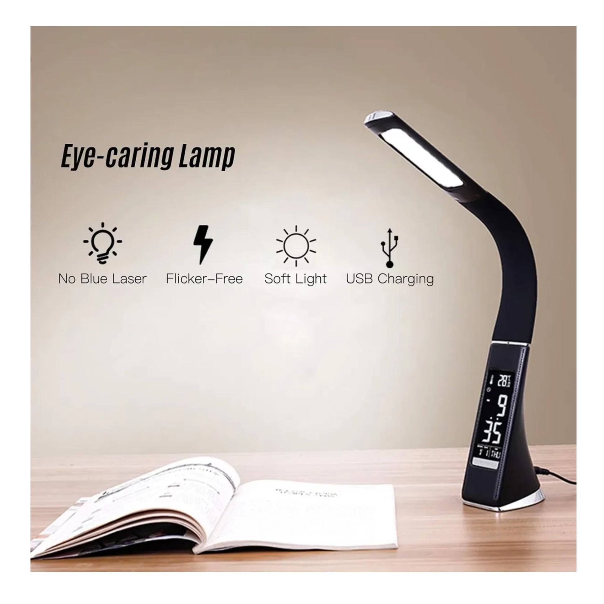 Esta lámpara LED de escritorio integra funciones digitales avanzadas, combinando iluminación eficiente con un reloj, alarma y termómetro incorporados. Ideal para optimizar espacios de trabajo o estudio, ofrece una luz ajustable que reduce la fatiga visual, mientras permite el monitoreo preciso del tiempo y la temperatura ambiente. Su diseño moderno y funcional facilita la organización y mejora la productividad con un control sencillo y táctil. Perfecta para quienes buscan tecnología práctica y confort en un solo equipo.