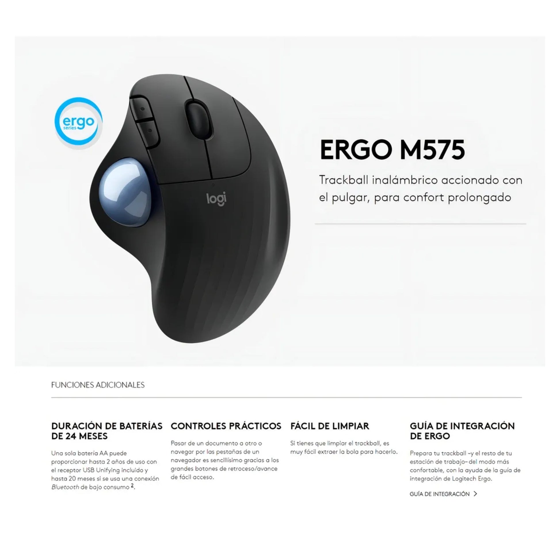 Logitech Ergo M575, Mouse Trackball Inalámbrico / Ergonómico