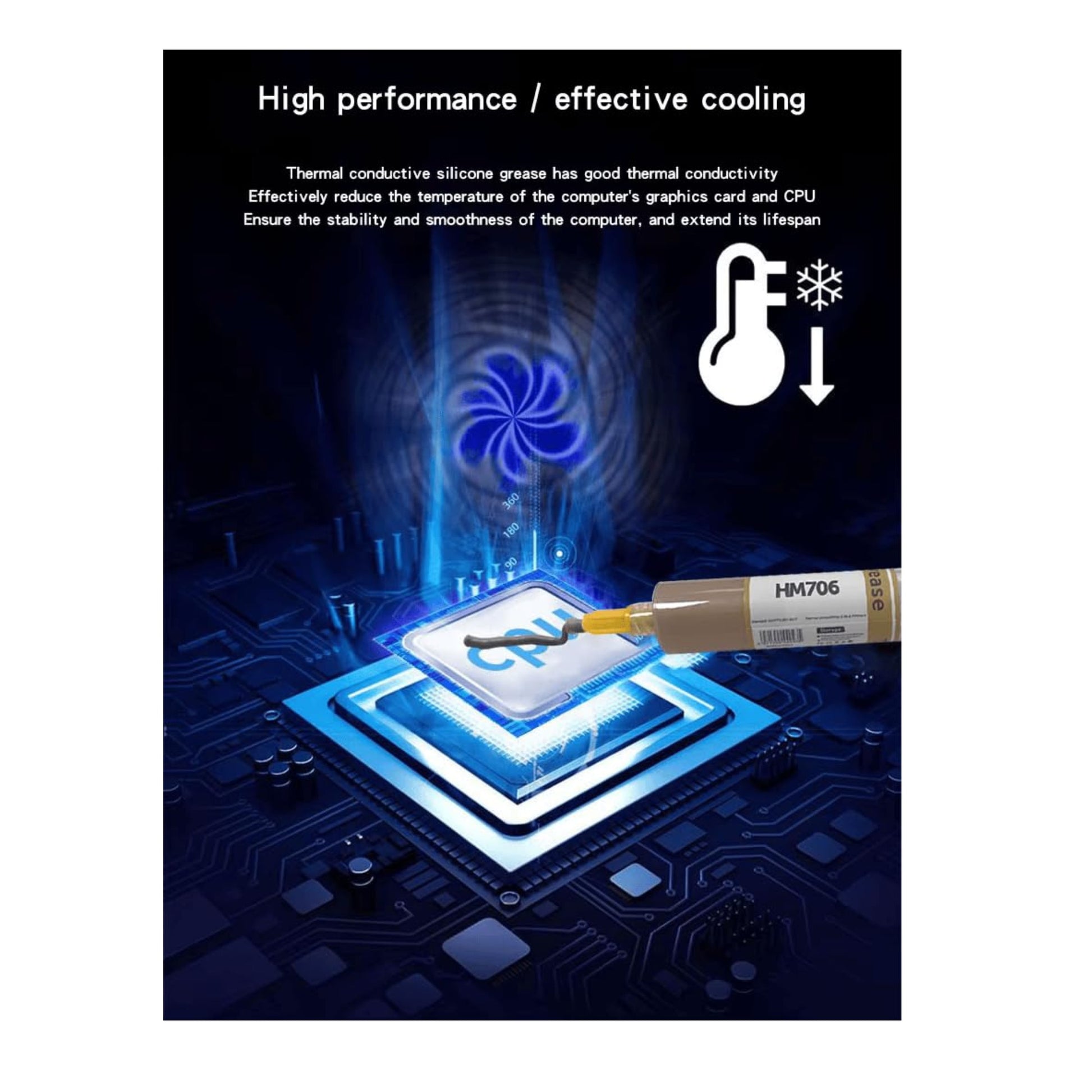 La Pasta Crema Silicona Térmica HM706 en color dorado ofrece una alta conductividad térmica, ideal para mejorar la transferencia de calor entre componentes electrónicos y disipadores. Su formulación avanzada garantiza un rendimiento óptimo y duradero, facilitando un enfriamiento eficiente en aplicaciones que requieren precisión térmica. Perfecta para profesionales que buscan fiabilidad y eficacia en mantenimiento o ensamblaje de dispositivos electrónicos.