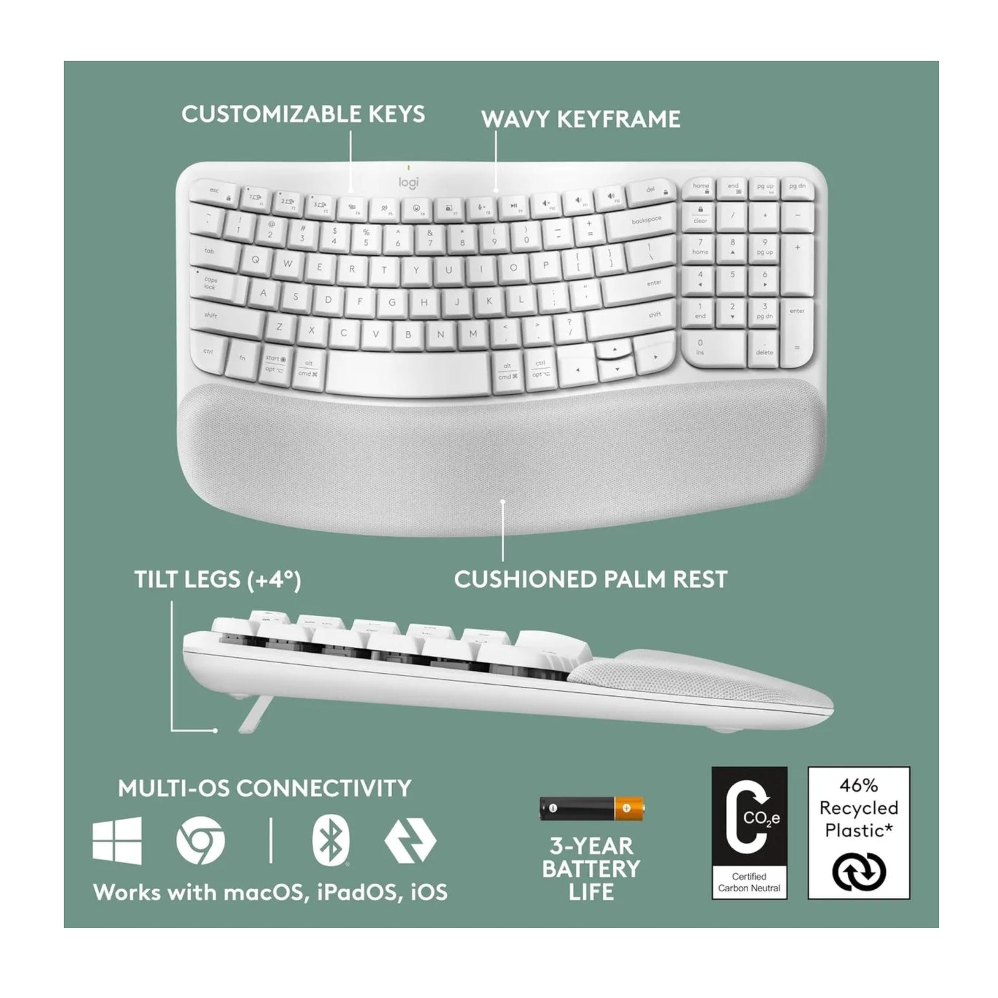 Teclado Ergonomico Inalambrico Logitech Wave Keys | Reposama