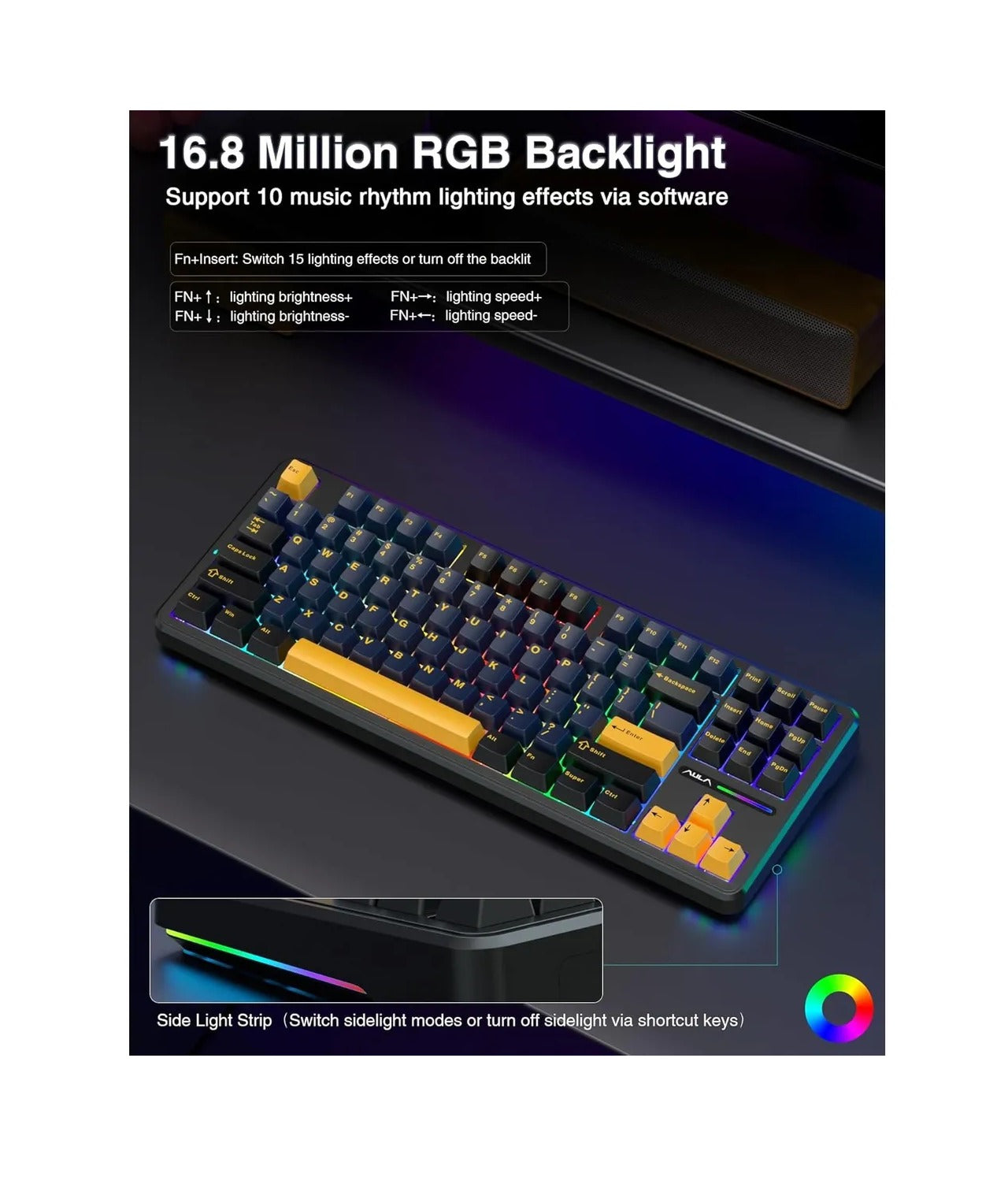 La retroiluminación en colores Rainbow agrega un toque vibrante a tu configuración, permitiéndote personalizar tu ambiente según tu estado de ánimo. Sus conexiones 2.4GHz y Bluetooth aseguran una conectividad estable y versátil, haciéndolo compatible con múltiples dispositivos. Además, su resistencia a salpicaduras te brinda tranquilidad durante largas sesiones de uso.